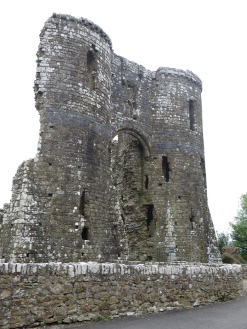 Curtain walls, here the gate towers of Llawhaden Castle, Wales © the Author.