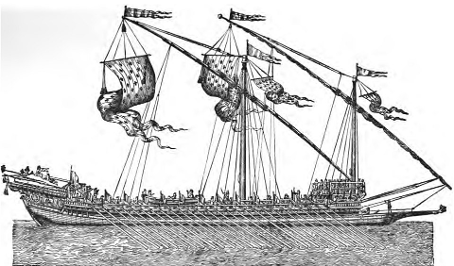 16th-century galley https://archive.org/details/barbarycorsairs01kellgoog, Wikimedia Commons from (Lane-Poole, 1890).