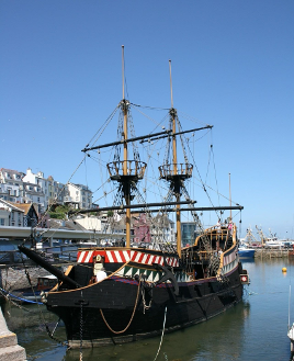 Replica of the Golden Hinde, source https://pixabay.com/de/photos/golden-hinde-replik-schiff-galeone-219818/ public domain.